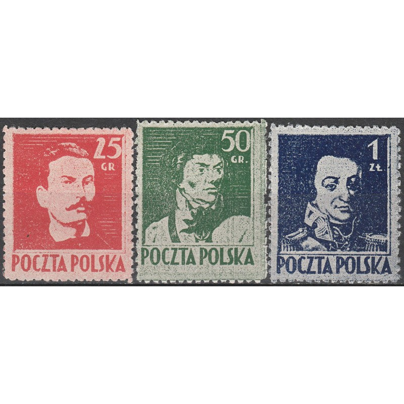 Romuald Traugutt, Tadeusz Kosciuszko, Jan Henryk Dabrowski. Stamps in mint condition, signed. Stamps issued without gum.