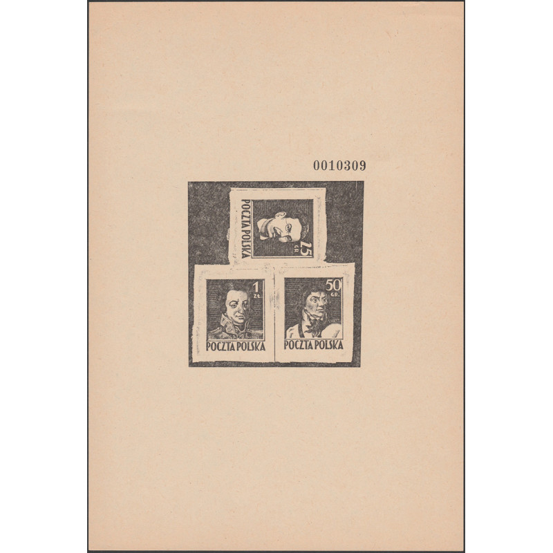 Romuald Traugutt, Tadeusz Kosciuszko, Jan Henryk Dabrowski. Reprint of proof from 1979.