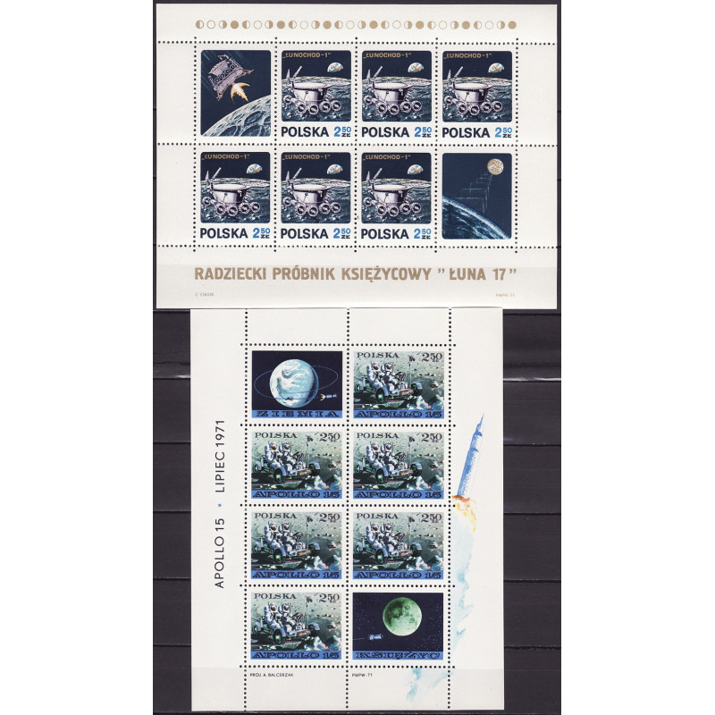 Moon flights of Lunik 17 and Apollo 15. Sheetlets in mint condition, never hinged.