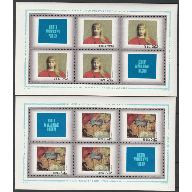 Stamp Day - Women in Polish Painting. Set of miniature sheet in mint condition, never hinged.