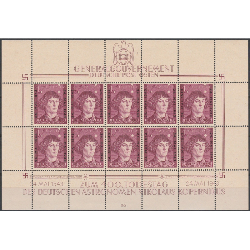400th dead anniversary of Nicolaus Copernicus. Sheetlet in perfect condition, never hinged.
