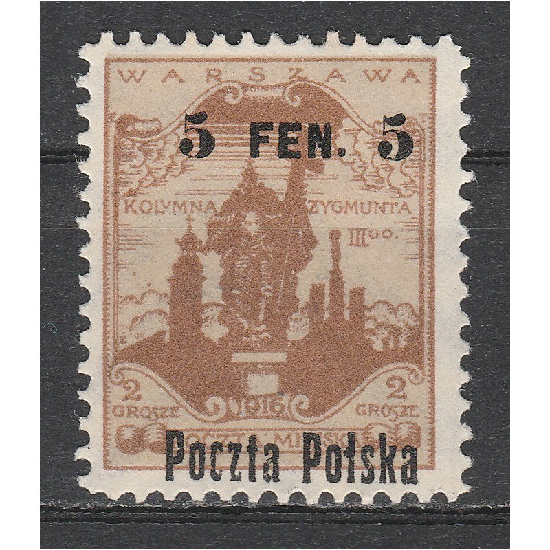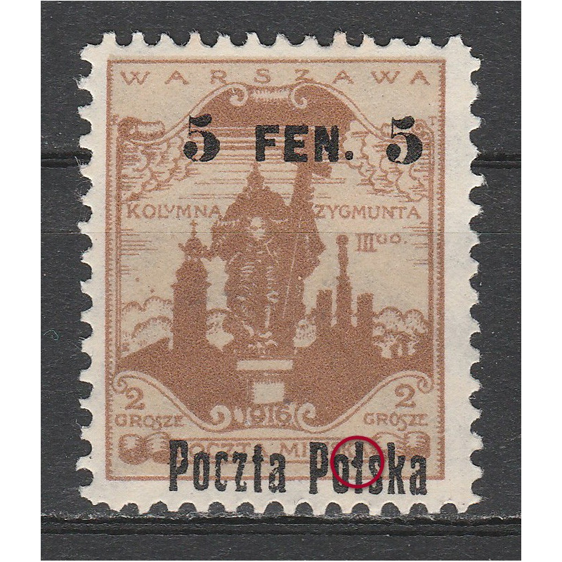 Surcharged issue of the Warsaw Local Post. Stamp with error B6, good condition, proviously light hinged. MLH*