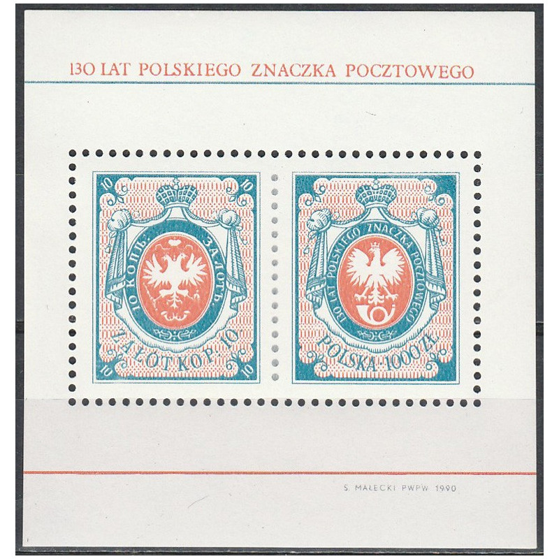 130th anniversary of Polish postal stamp. Miniature sheet in mint condition, never hinged.