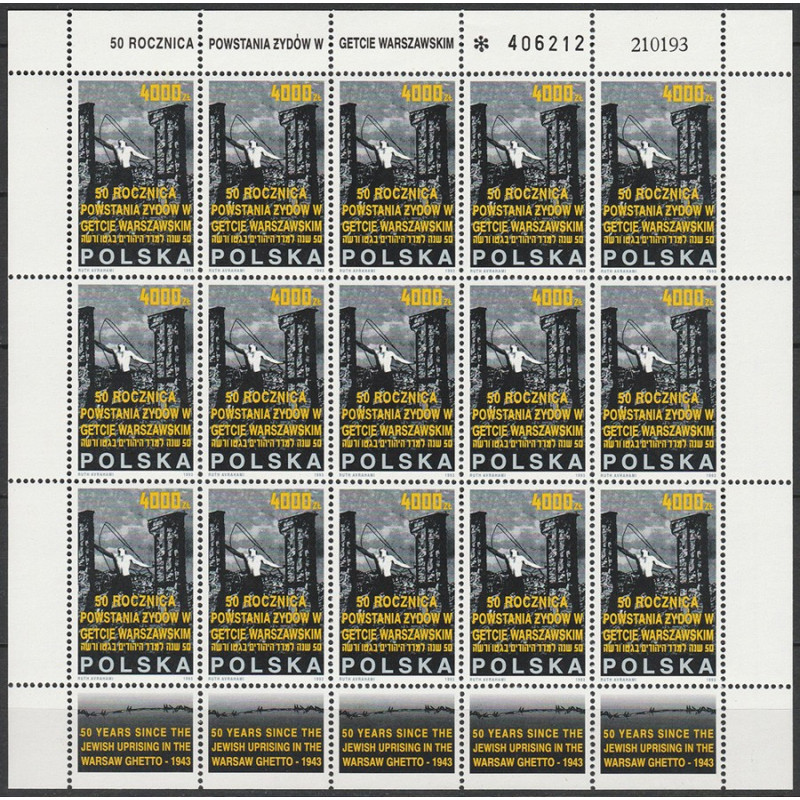 50th anniversary of the Warsaw Ghetto Uprising. Sheetlet in mint condition, never hinged.