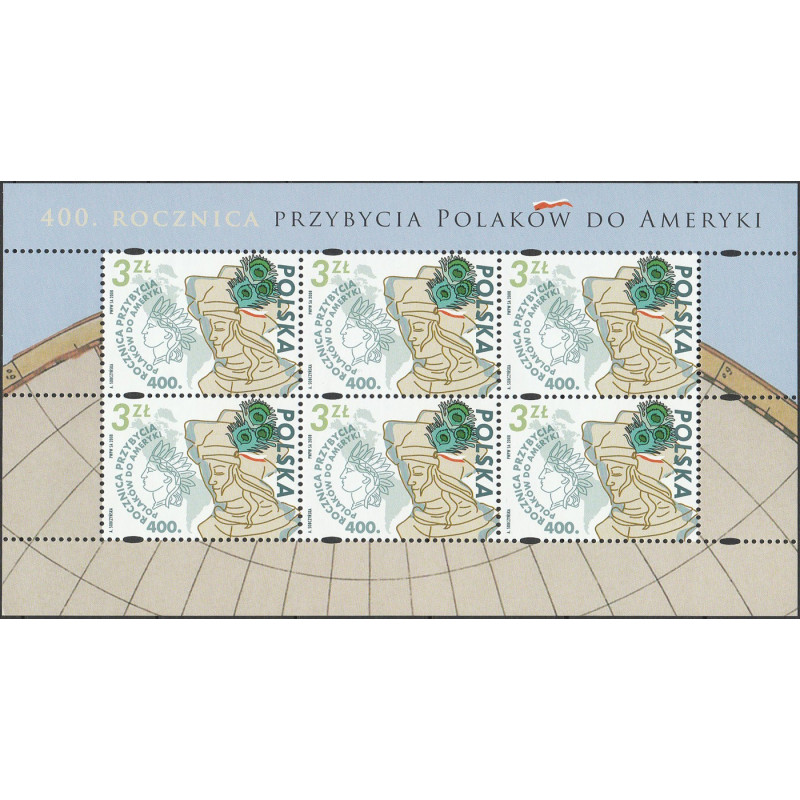 400th anniversary of Poles' arrival in America. Sheetlet in mint condition, never hinged.