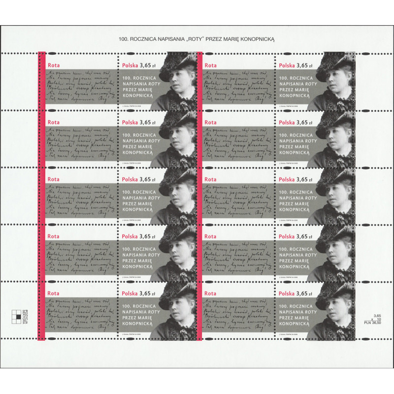 100th anniversary of Rota writing by Maria Konopnicka. Sheetlet in mint condition, never hinged.