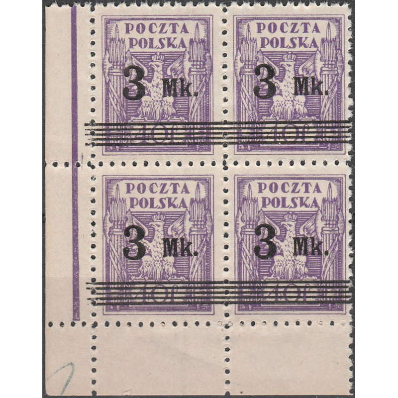 Surcharge issue. Stamps in mint condition, never hinged. Block of 4 with error B2 on stamp from field 91.