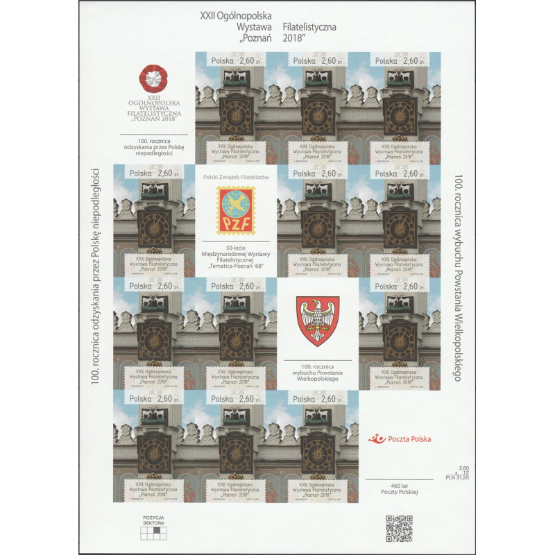 XXII National Philatelic Exhibition „Poznań 2018”. Sheetlet in mint condition, never hinged.