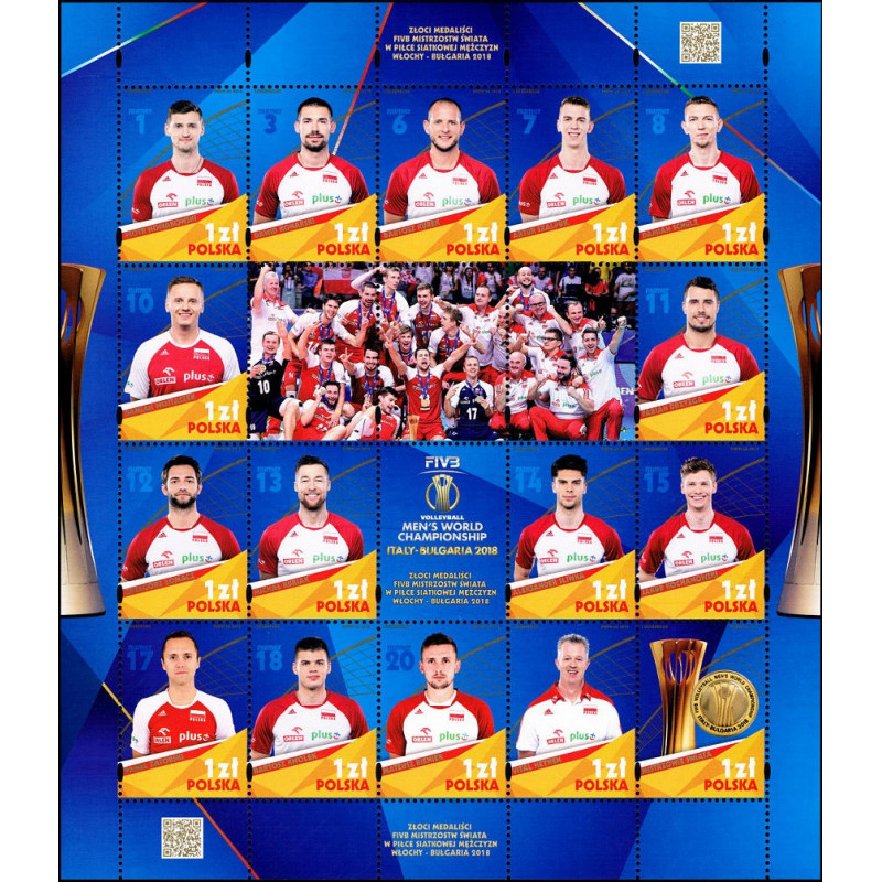 Men's Volleyball World Cup Gold Medals, Italy - Bulgaria 2018. Sheetlet in mint condition, never hinged.