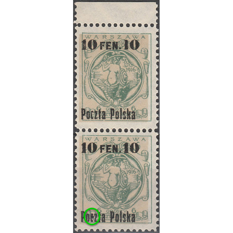 Surcharged issue of the Warsaw Local Post. Stamp with error B1, mint condition, never hinged. Signed by PZF expert.