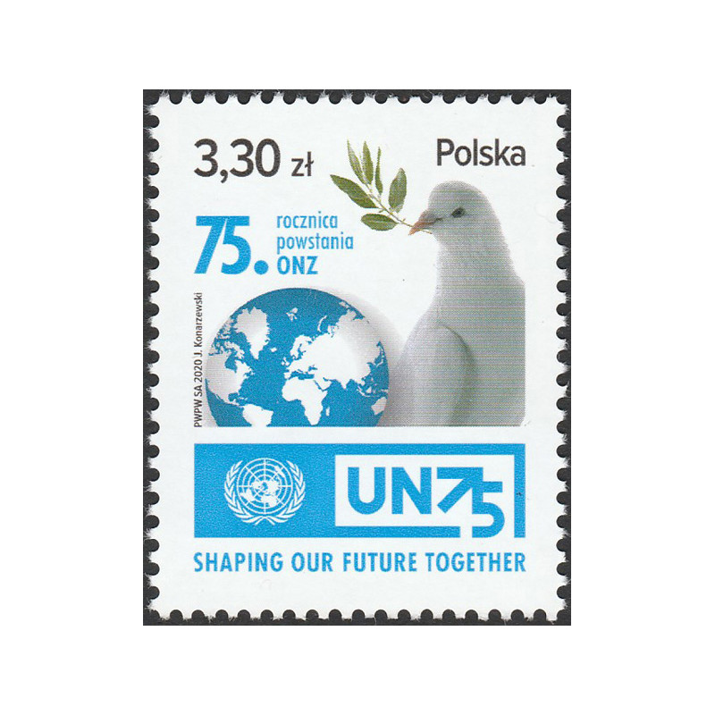 75th anniversary of United Nations. Stamp in mint condition, never hinged.
