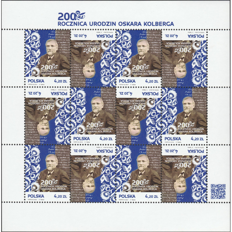 200th birth anniversary of Oskar Kolberg. Sheetlet in mint condition, never hinged.