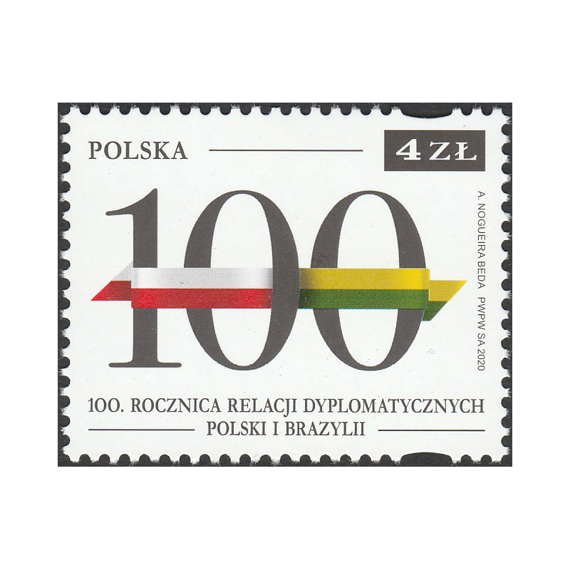 100th anniversary of diplomatic relations between Poland and Brazil. Stamp in mint condition, never hinged.