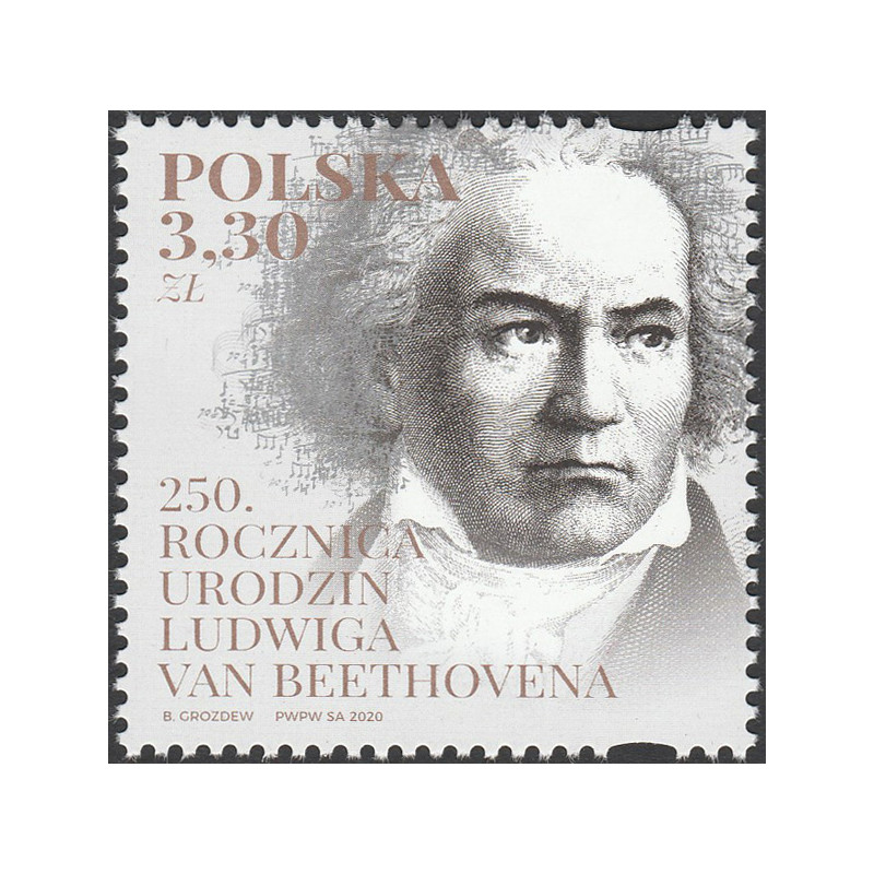 250th birth anniversary of Ludwig van Beethoven. Stamp in mint condition, never hinged.