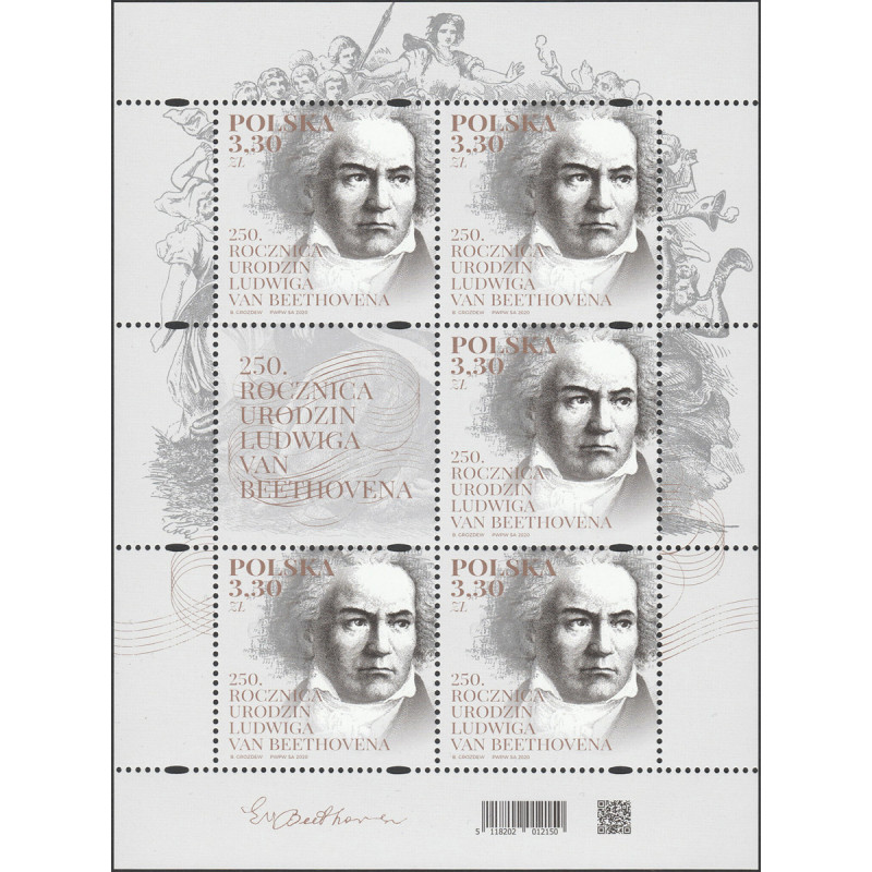 250th birth anniversary of Ludwig van Beethoven. Sheetlet in mint condition, never hinged.