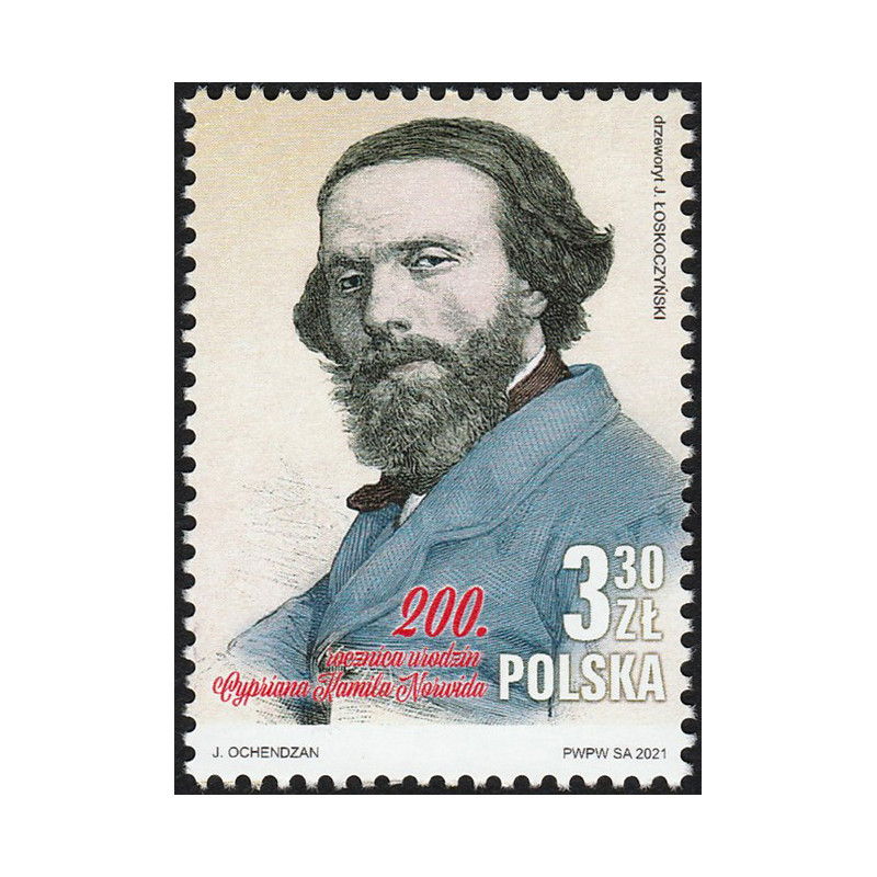 200th birth anniversary of Cyprian Kamil Norwid. Stamp in mint condition, never hinged.