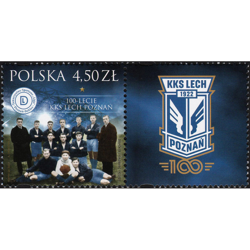 100 years of KKS Lech Poznań. Stamp in mint condition, never hinged.
