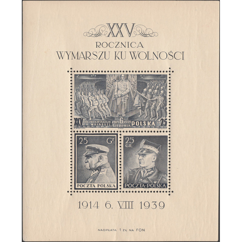 25th anniversary of the Polish Legion. Miniature sheet previously light hinged but stamps in mint never hinged condition.