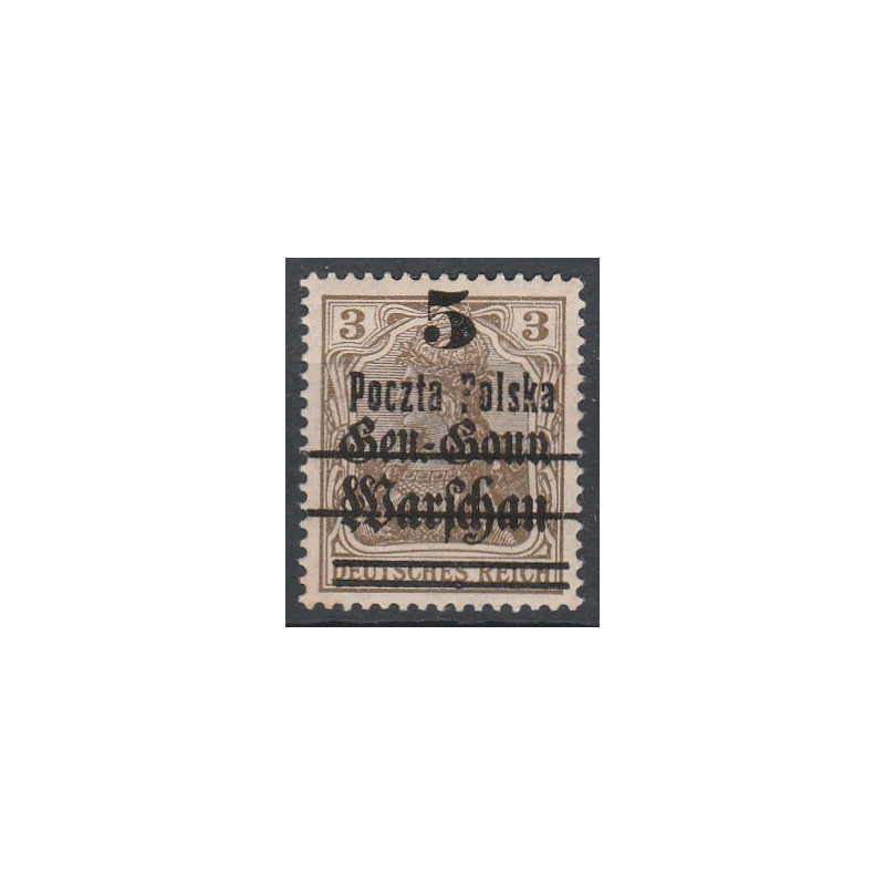 Wydanie przedrukowane na znaczkach General Gouvernement. Znaczek czysty bez śladu podlepki. Gwarancja M. Miszczak. Dodatkowo usterka nadruku.
