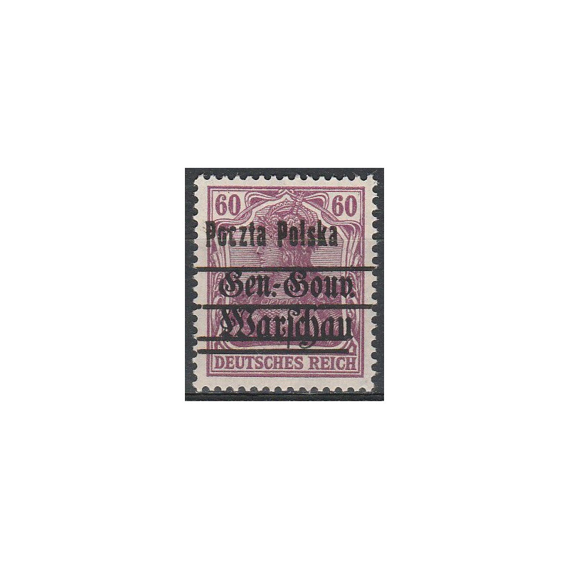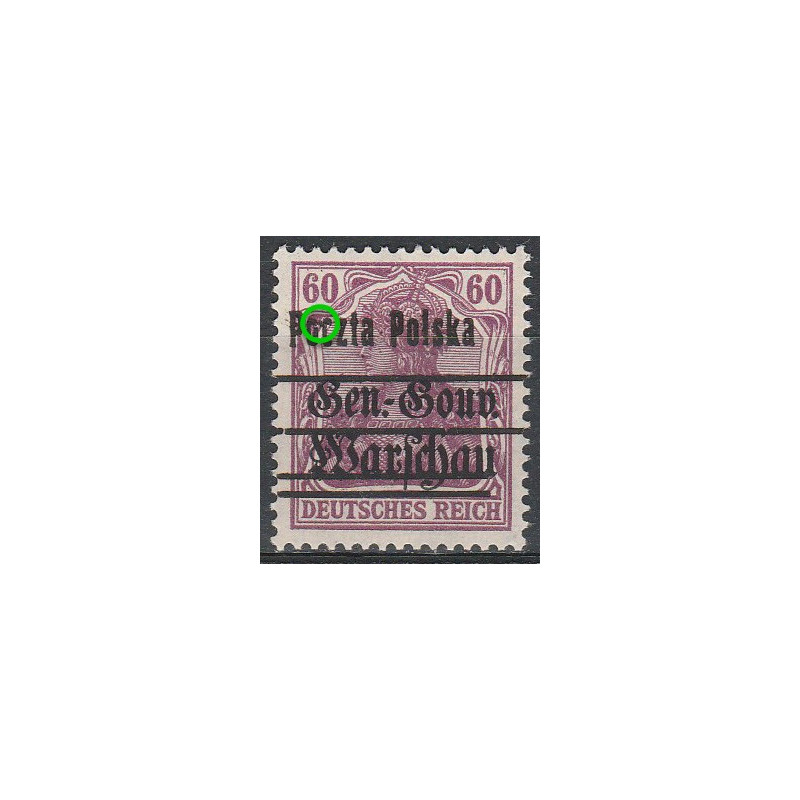 Wydanie przedrukowane na znaczkach General Gouvernement. Znaczek czysty bez śladu podlepki z rzadką usterką nadruku B2. Gwarancja Z. Wiatrowski.