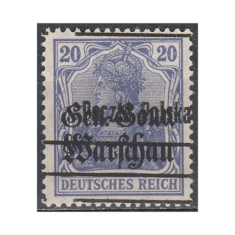 Wydanie przedrukowane na znaczkach General Gouvernement. Znaczek czysty bez śladu podlepki. Makulatura - nadruk przsunięty w poziomie. Gwarancja Z. Wiatrowski.