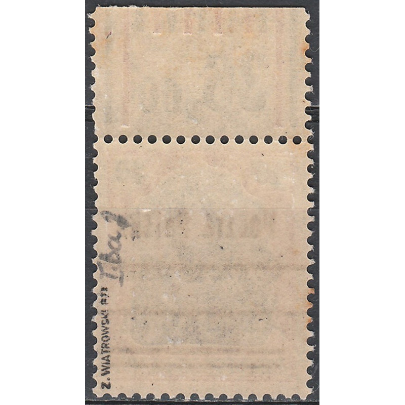 Wydanie przedrukowane na znaczkach General Gouvernement. Znaczek czysty bez śladu podlepki z liczba rozrachunkową na marginesie. Gwarancja Z. Wiatrowski.