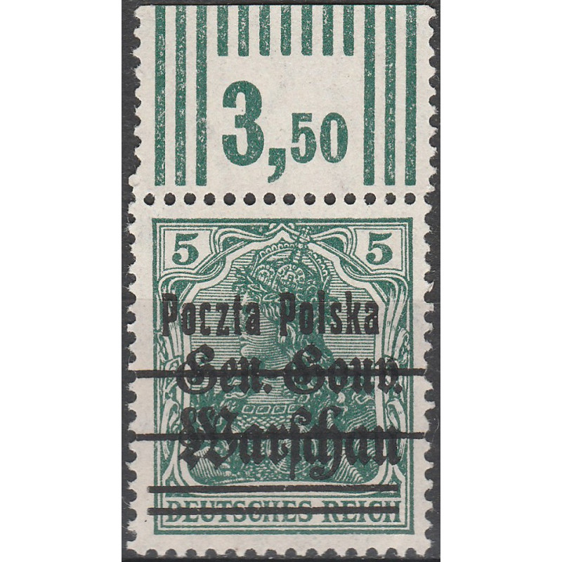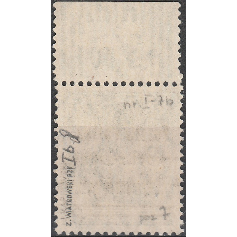 Wydanie przedrukowane na znaczkach General Gouvernement. Znaczek czysty bez podlepki z górnym marginesem. Gwarancja Z. Wiatrowski.