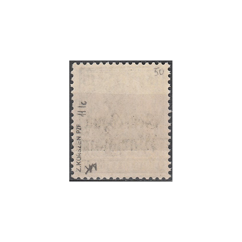 Wydanie przedrukowane na znaczkach General Gouvernement. Znaczek czysty bez podlepki. Makulatura - nadruk przsunięty w poziomie. Gwarancja Z. Korszeń.