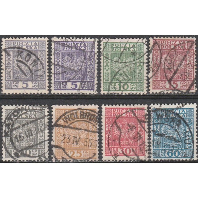 Godło państwa, tzw. małe doniczki. Znaczki kasowane.