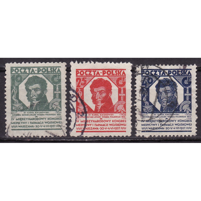 IV Międzynarodowy Kongres Medycyny i Farmacji Wojskowej w Warszawie. Znaczki kasowane.