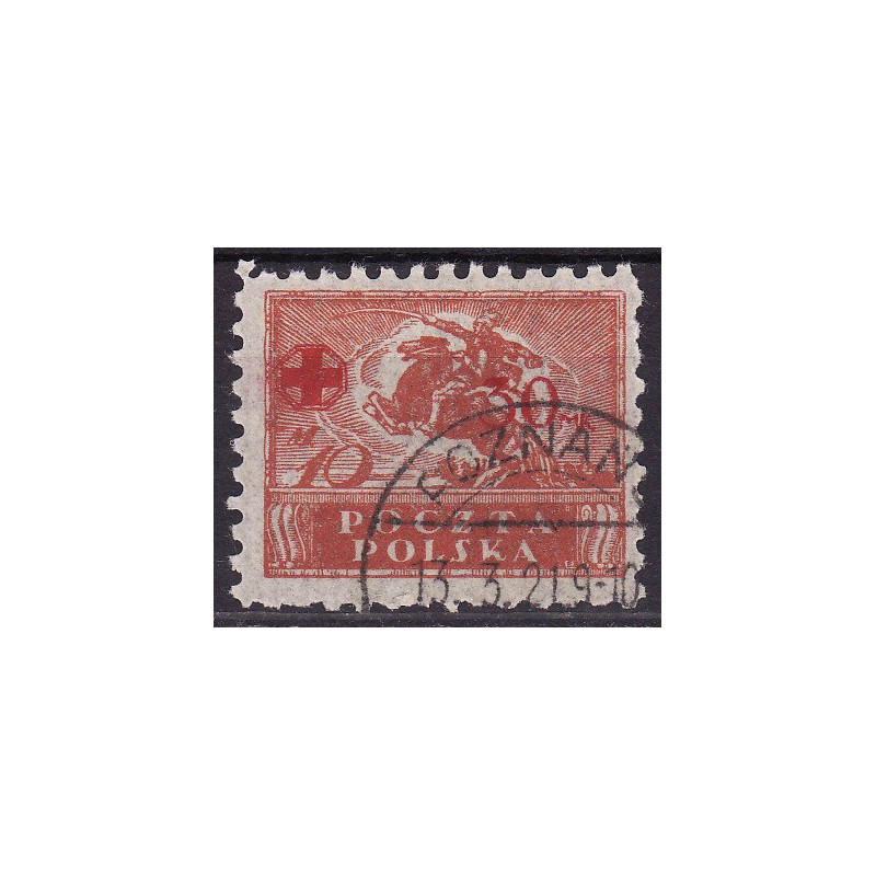 Wydanie przedrukowane z dopłatą na Polski Czerwony Krzyż. Znaczek kasowany.