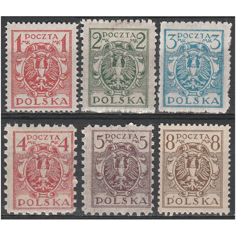 Orzeł na tarczy barokowej. Znaczki czyste, bez podlepki.