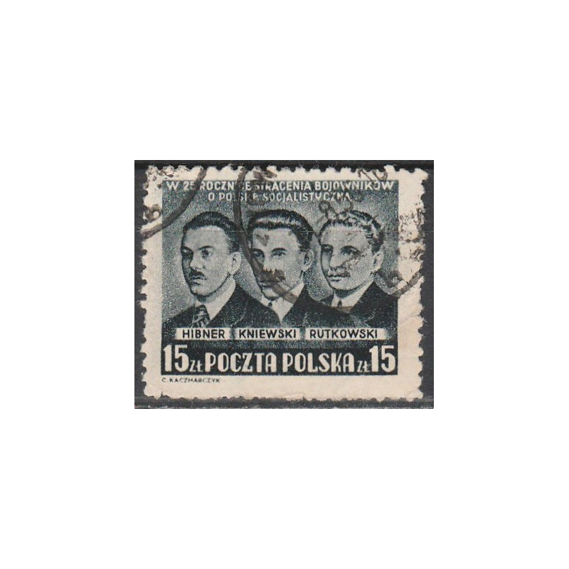 25. rocznica stracenia Wł. Hiberna, Wł. Kniewskiego i H. Rutkowskiego. Znaczek kasowany.
