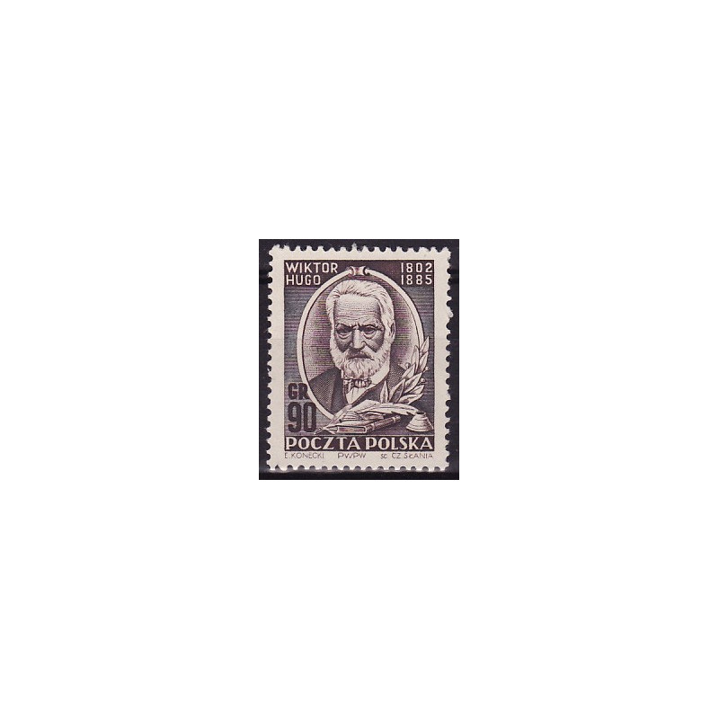 150. rocznica urodzin Wiktora Hugo. Znaczek czysty bez podlepki.