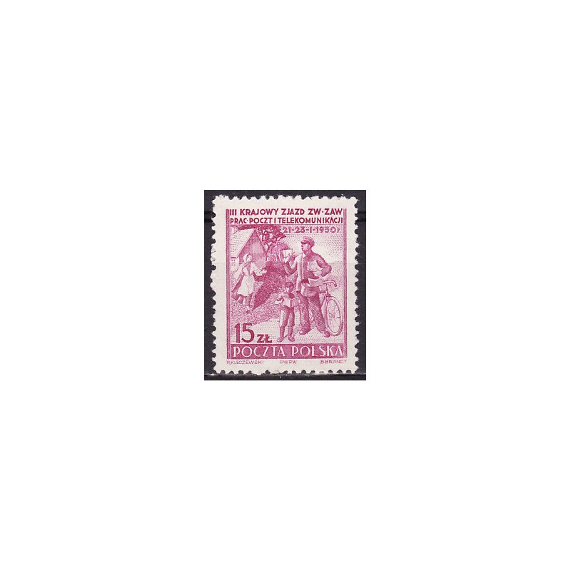 III Zjazd Związku Zawodowego Pracowników Poczt i Telekomunikacji. Znaczek czysty bez podlepki.