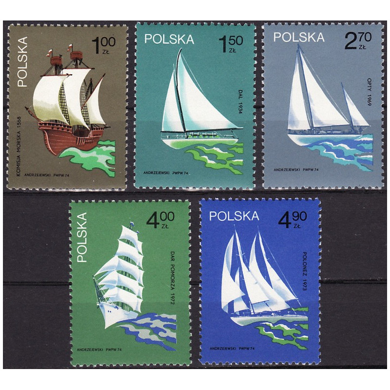 Sławne polskie żaglowce. Znaczki czyste bez podlepki.