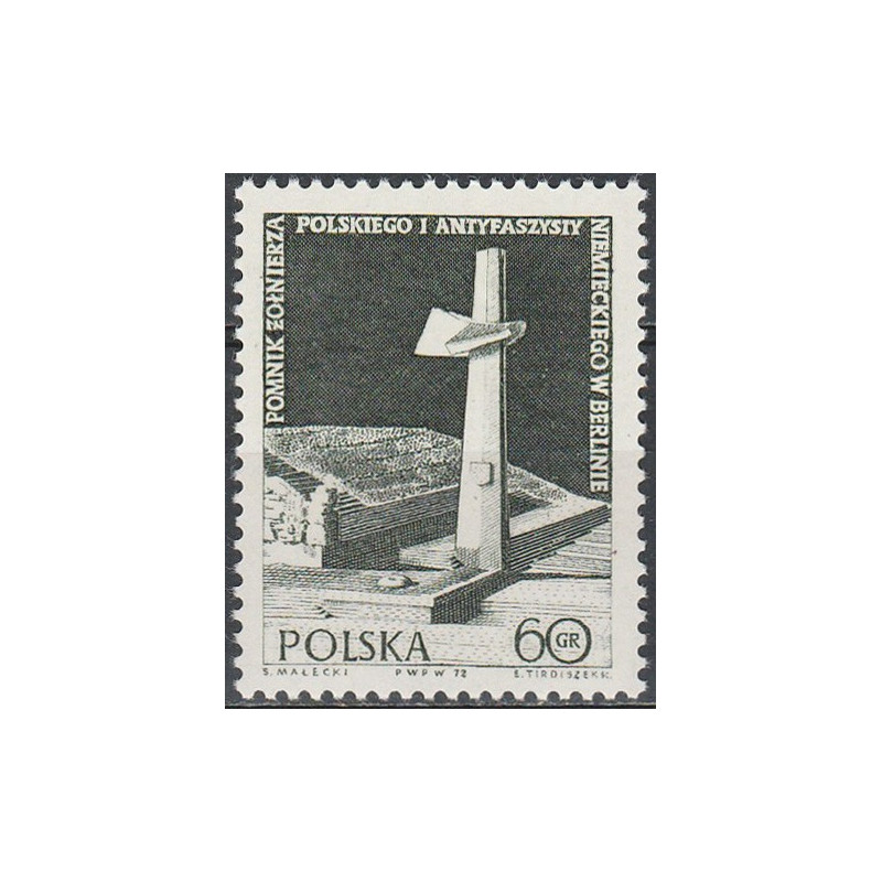 Odsłonięcie pomnika żołnierza polskiego i antyfaszysty niemieckiego w Berlinie. Znaczek czysty bez podlepki.