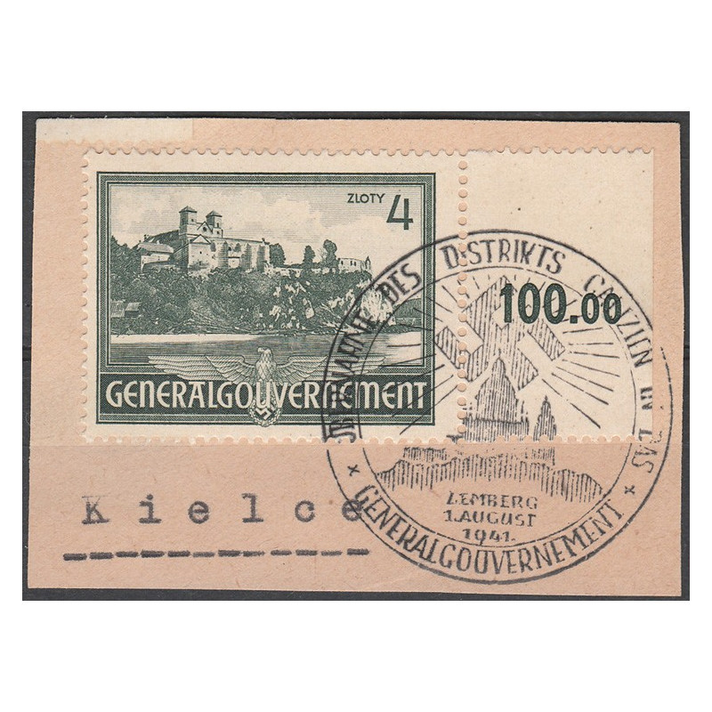 Widoki zabytkowych budowli (II). Znaczek kasowany okolicznościowo na wycinku. Kasownik 10, Lwów.