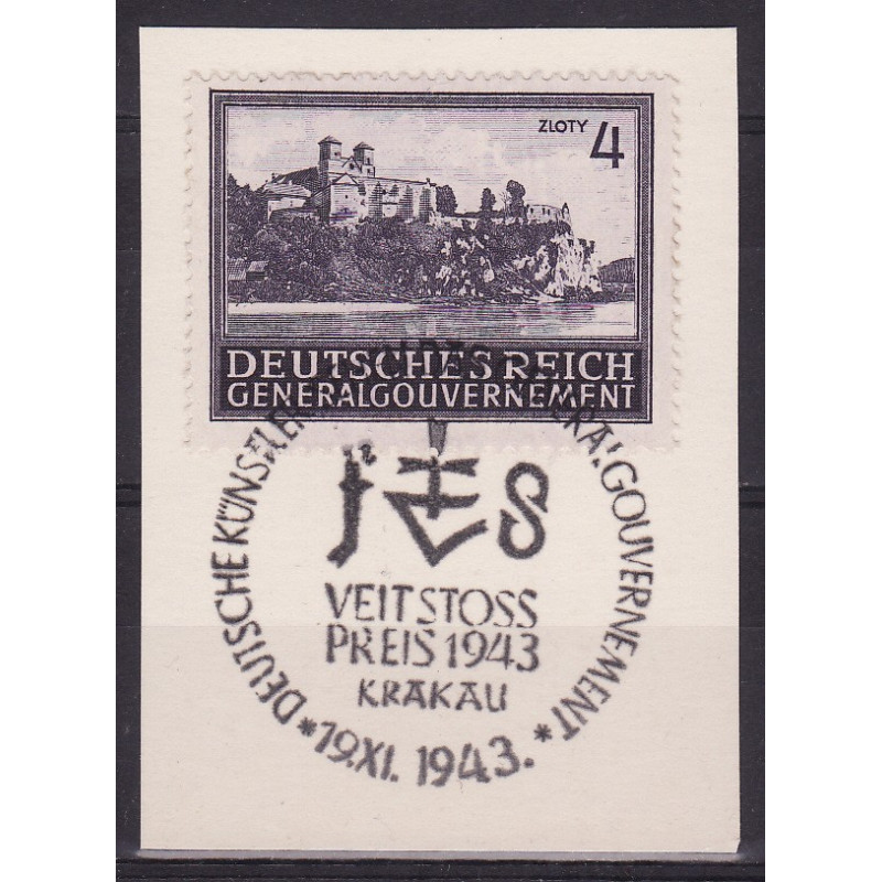 Widoki zabytkowych budowli (IV). Znaczek kasowany okolicznościowo na wycinku. Kasownik 35, Kraków.