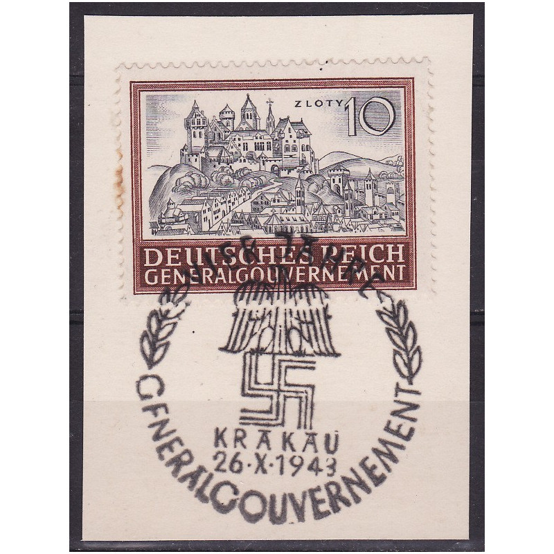 Widoki zabytkowych budowli (IV). Znaczek kasowany okolicznościowo na wycinku. Kasownik 34, Kraków.
