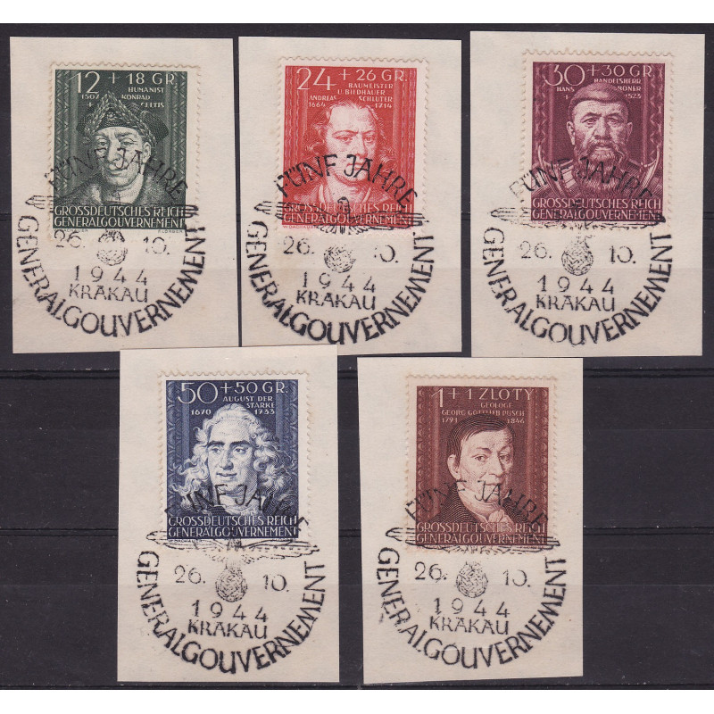 Wydanie na Fundusz Kultury Generalnego Gubernatorstwa. Znaczki kasowane okolicznościowo na wycinkach. Kasownik 38, Kraków.