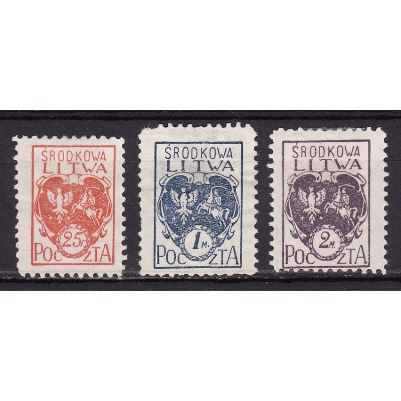 Godło Litwy Środkowej. Znaczki czyste z podlepka lub jej śladem.