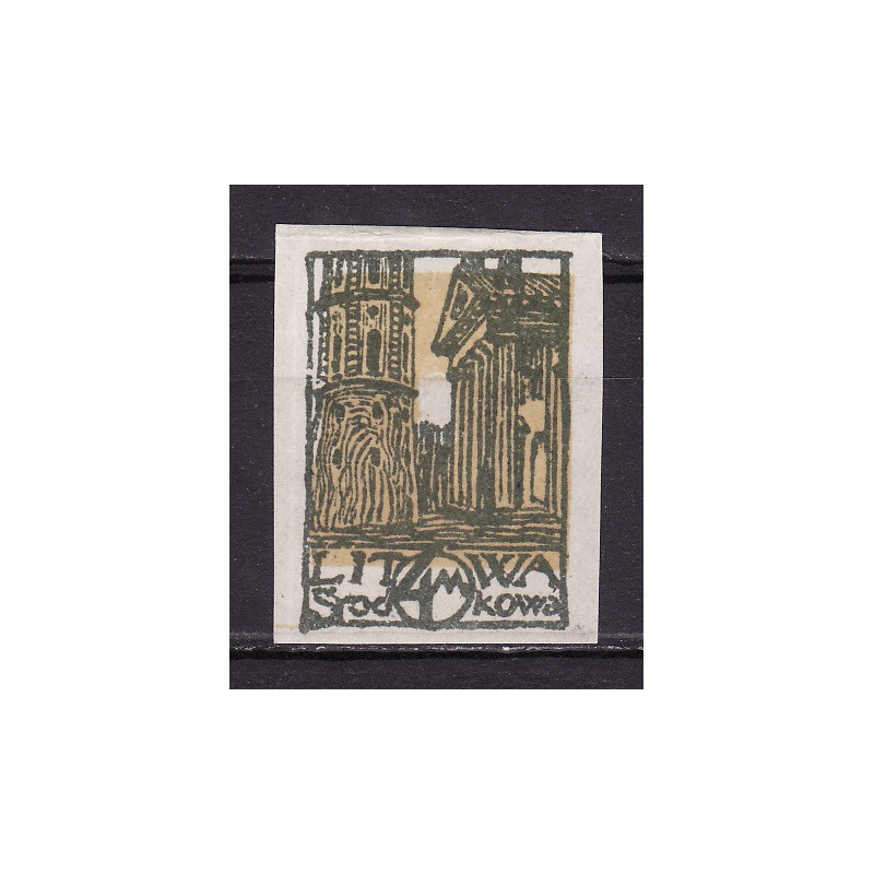 Katedra i wieża w Wilnie. Znaczek czysty z podlepka lub jej śladem. Przesunięcie tła.