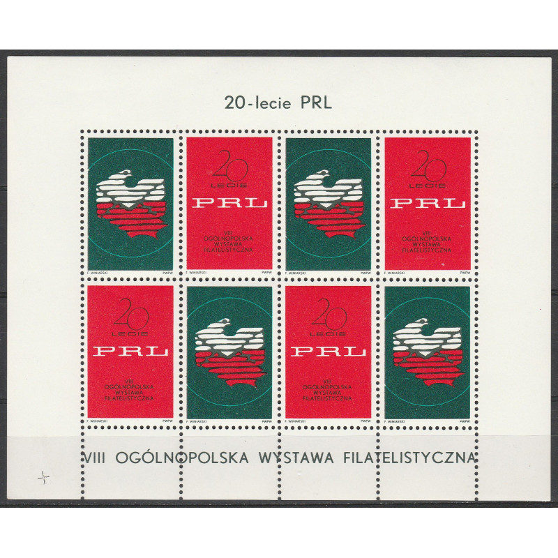 Nalepka wydana z okazji VIII Ogólnopolskiej Wystawy Filatelistycznej. 20 - lecie PRL.