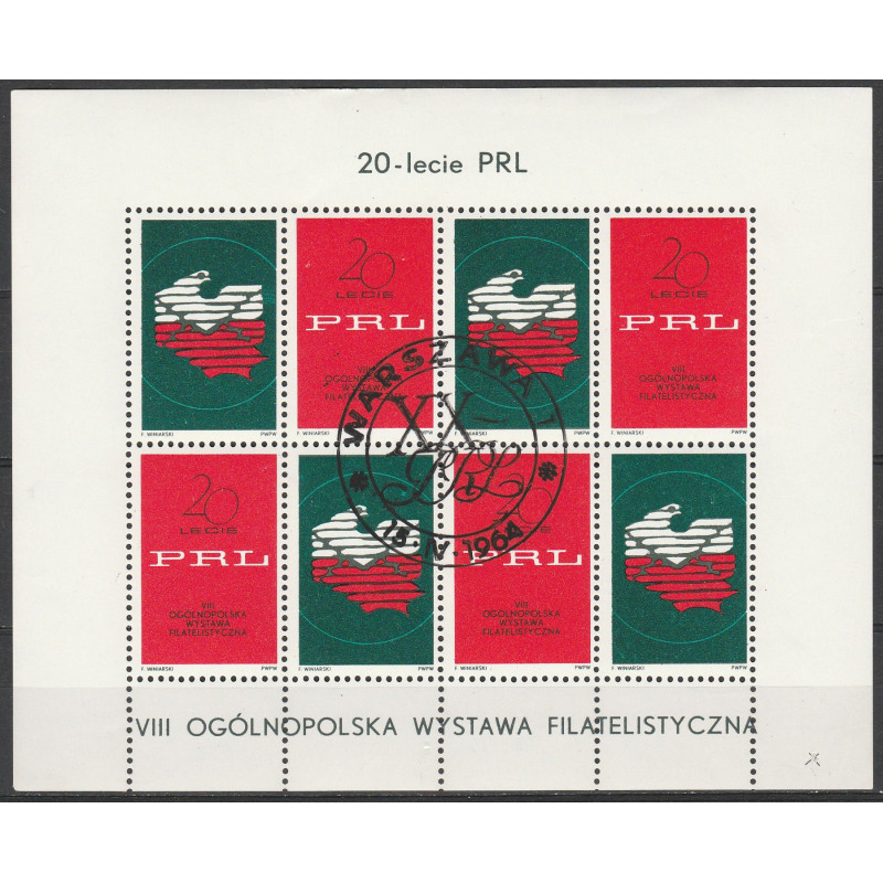 Nalepka wydana z okazji VIII Ogólnopolskiej Wystawy Filatelistycznej. 20 - lecie PRL. Skasowana okolicznościowo.