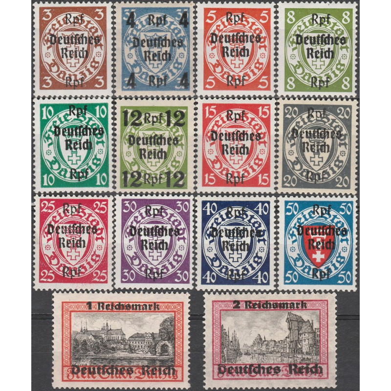 Wydanie przedrukowane na znaczkach Wolnego Miasta Gdańska. Znaczki czyste bez podlepki.