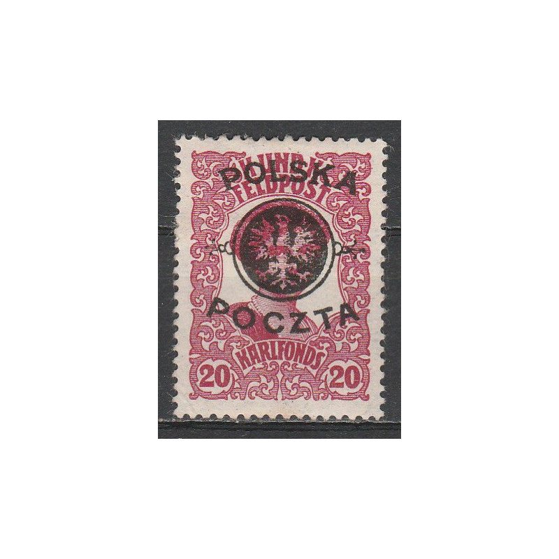 Wydanie przedrukowane na znaczkach dobroczynnych austro-węgierskiej poczty polowej. Znaczek czysty ze śladem po podlepce. Gwarancja Z. Wiatrowski.