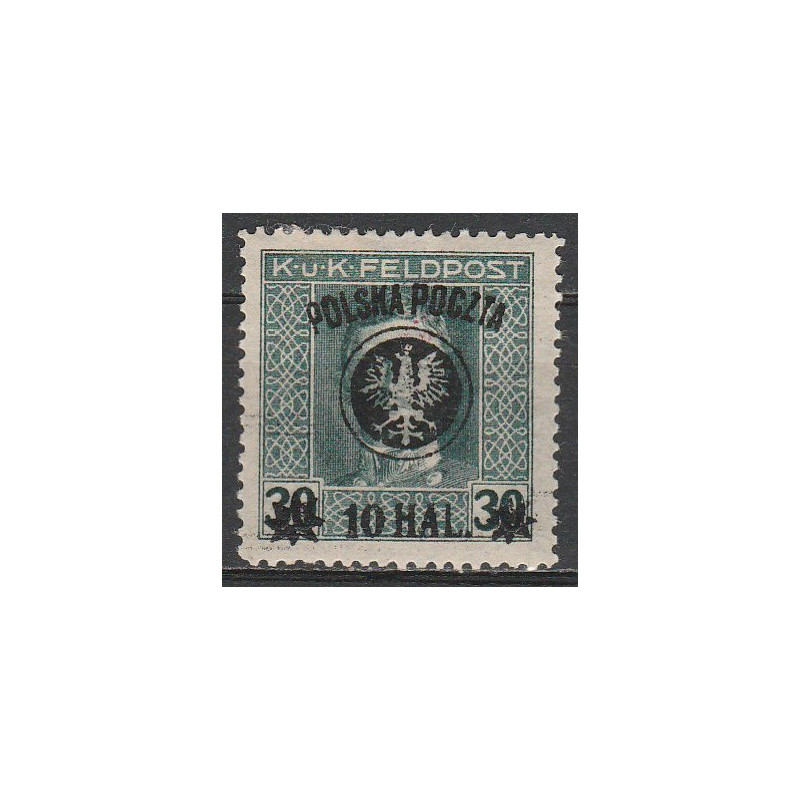 Wydanie przedrukowane na znaczkach austro-węgierskiej poczty polowej. Znaczek czysty ze śladem po podlepce. Gwarancja Z. Wiatrowski.
