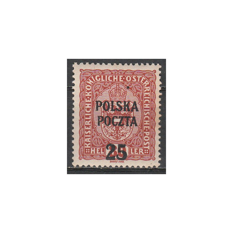 Wydanie przedrukowane na znaczkach austriackich. Znaczek czysty bez śladu po podlepce. Usterka nadruku B16 (czarna kropka średnicy otworu perforacyjnego). Gwarancja Z. Wiatrowski.