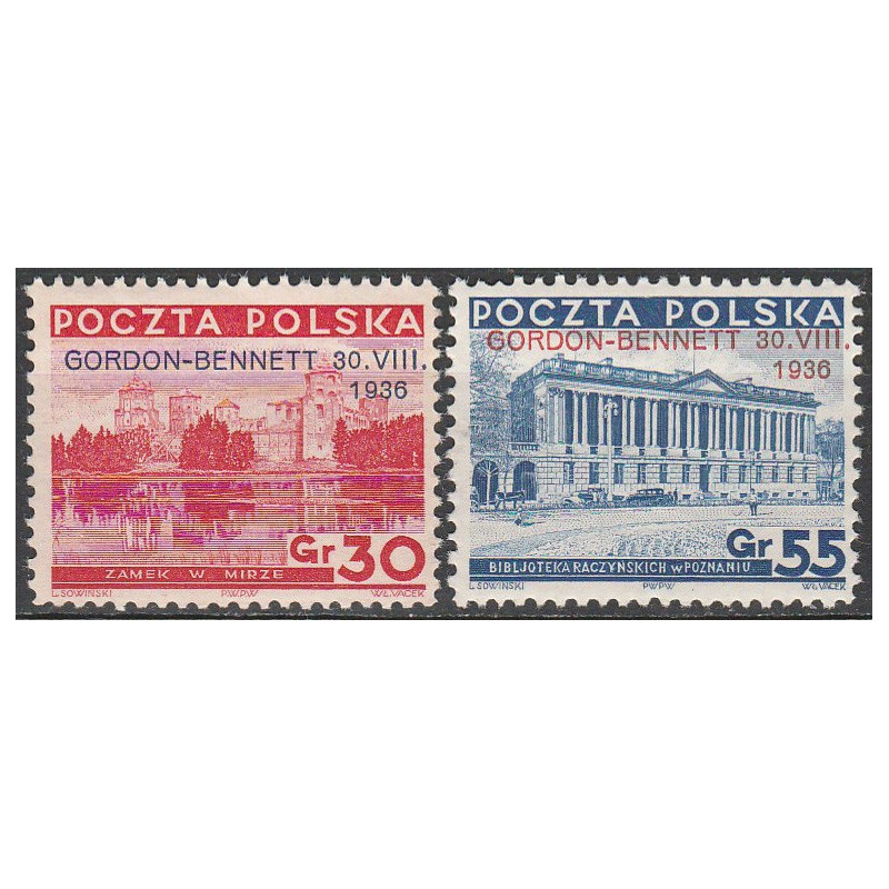 Zawody balonowe o puchar Gordon-Bennetta. Znaczki czyste bez podlepki.